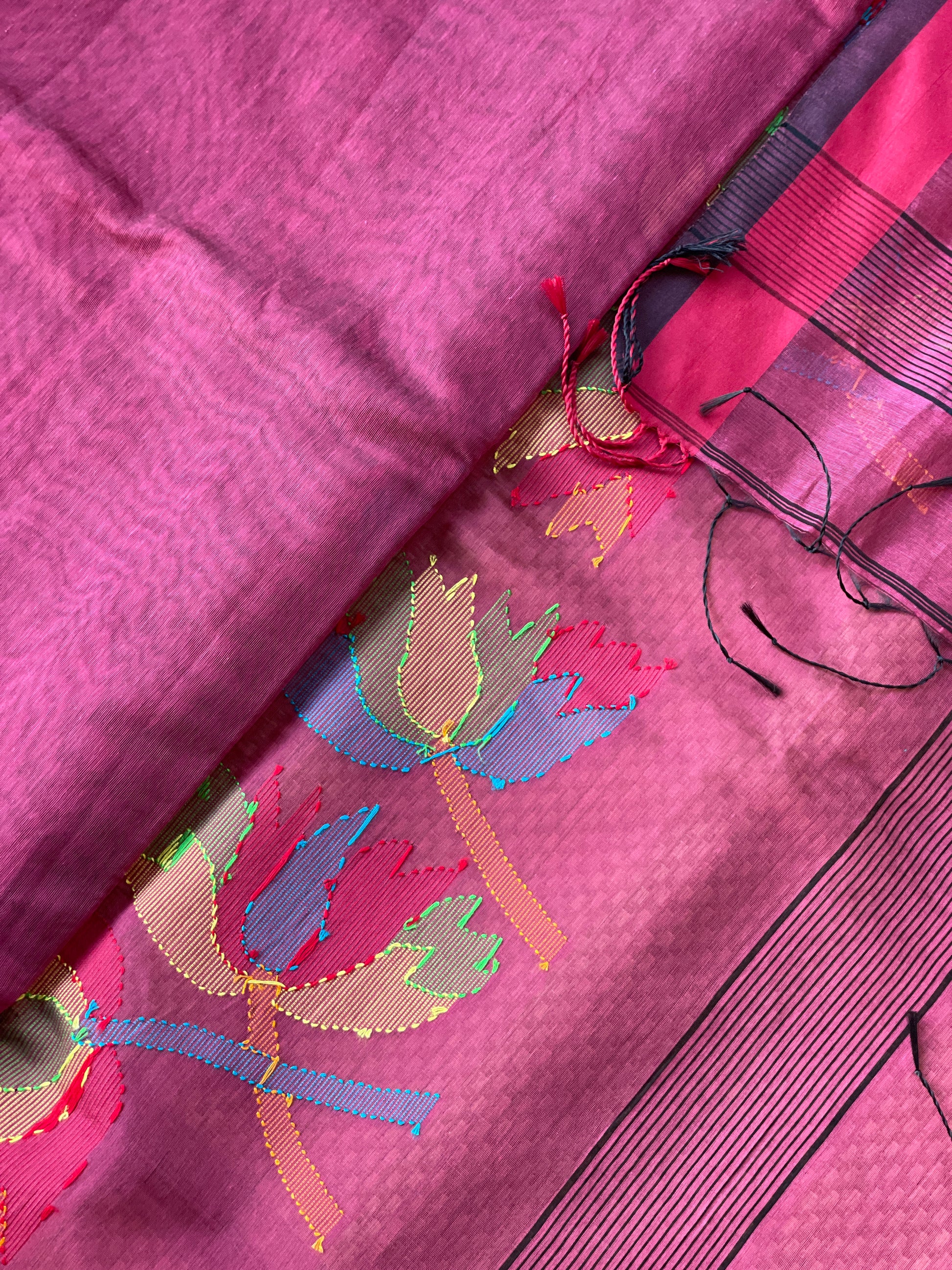 - Minor variations in weave or colour are natural in handwoven fabrics and not considered defects.