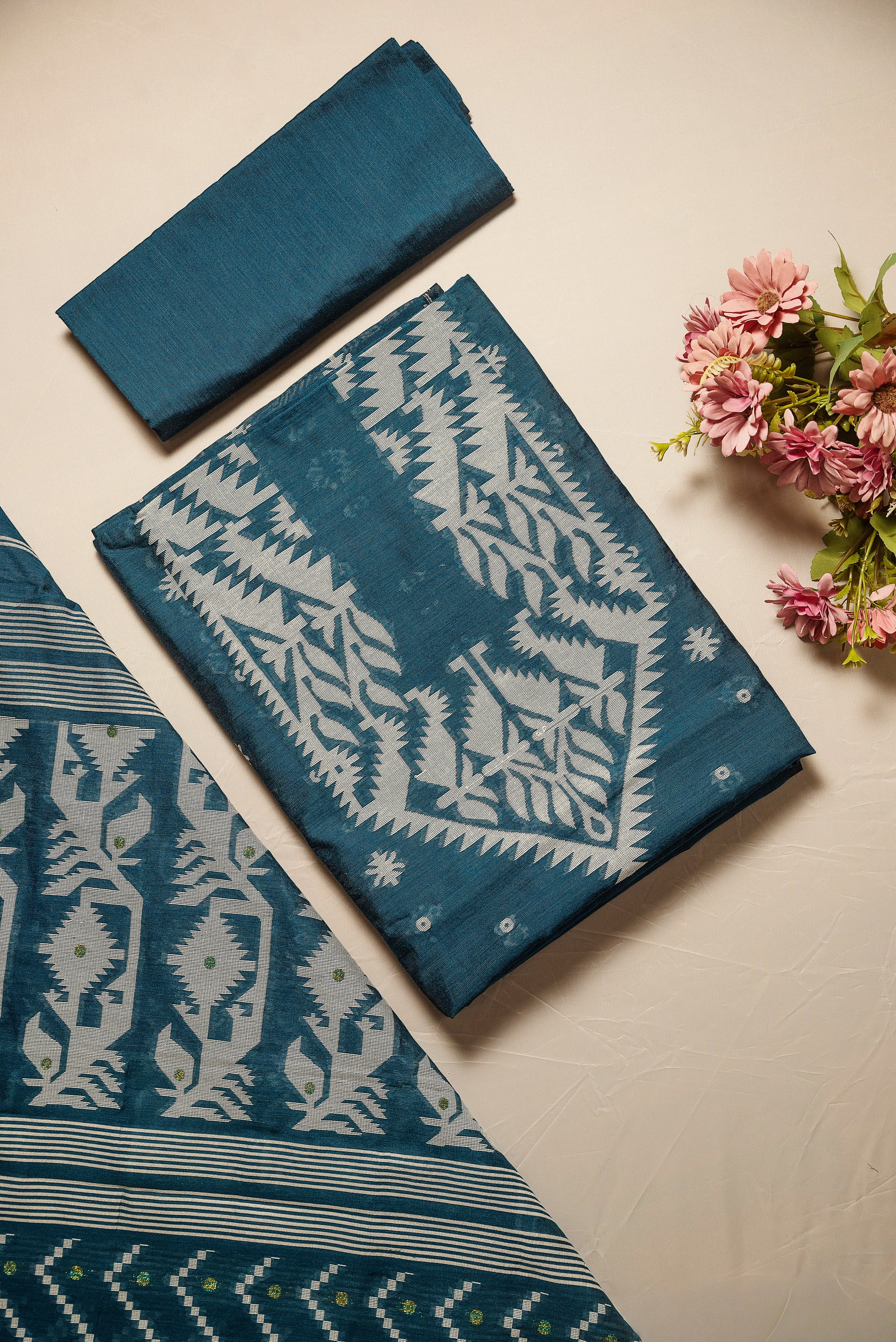 Crafted from the perfect harmony of breathable cotton and lustrous silk, this suit brings together comfort and elegance in one. Lightweight and versatile, they are ideal for festive gatherings, office wear, or casual elegance—making them a timeless choice for every wardrobe.