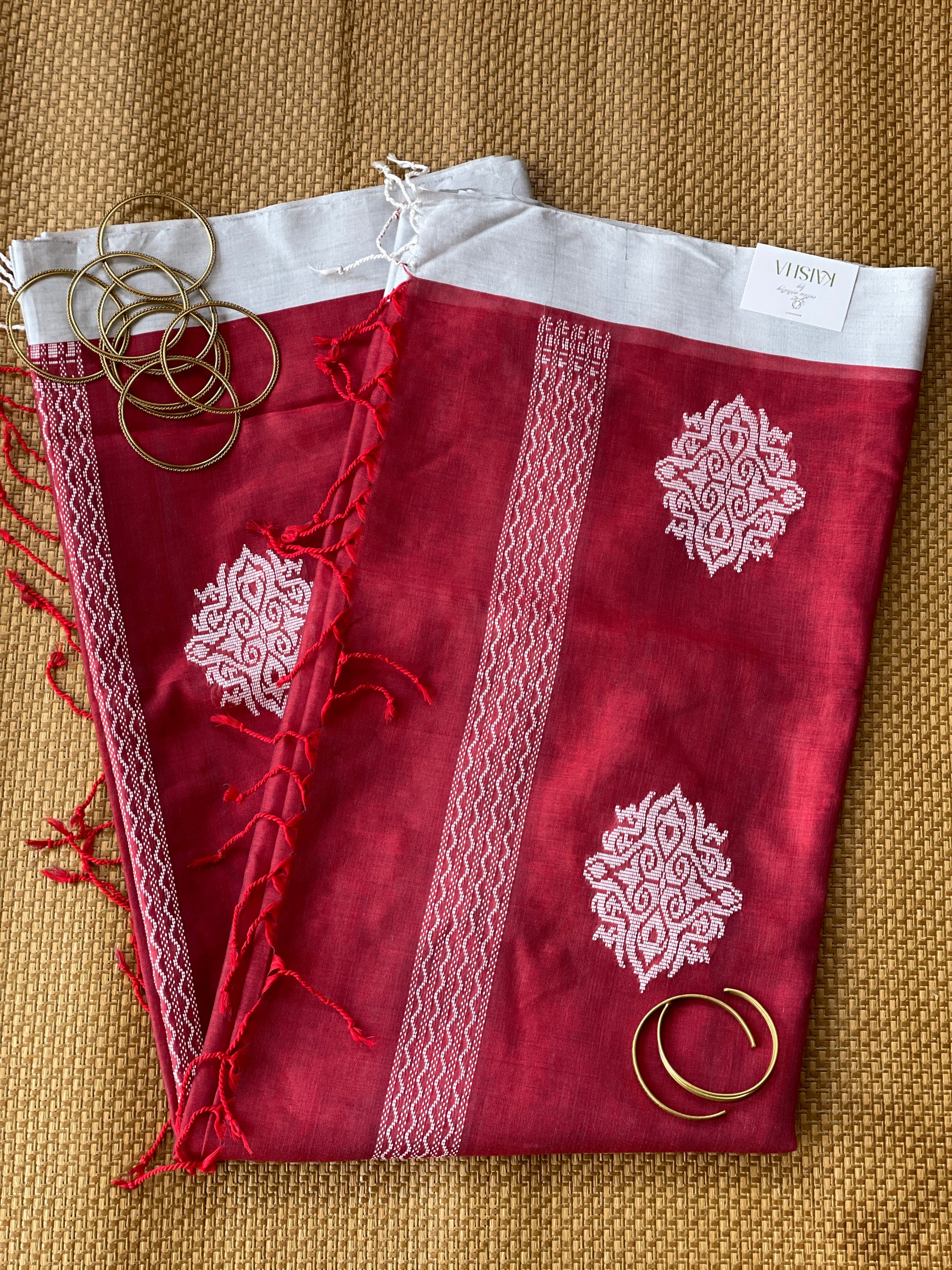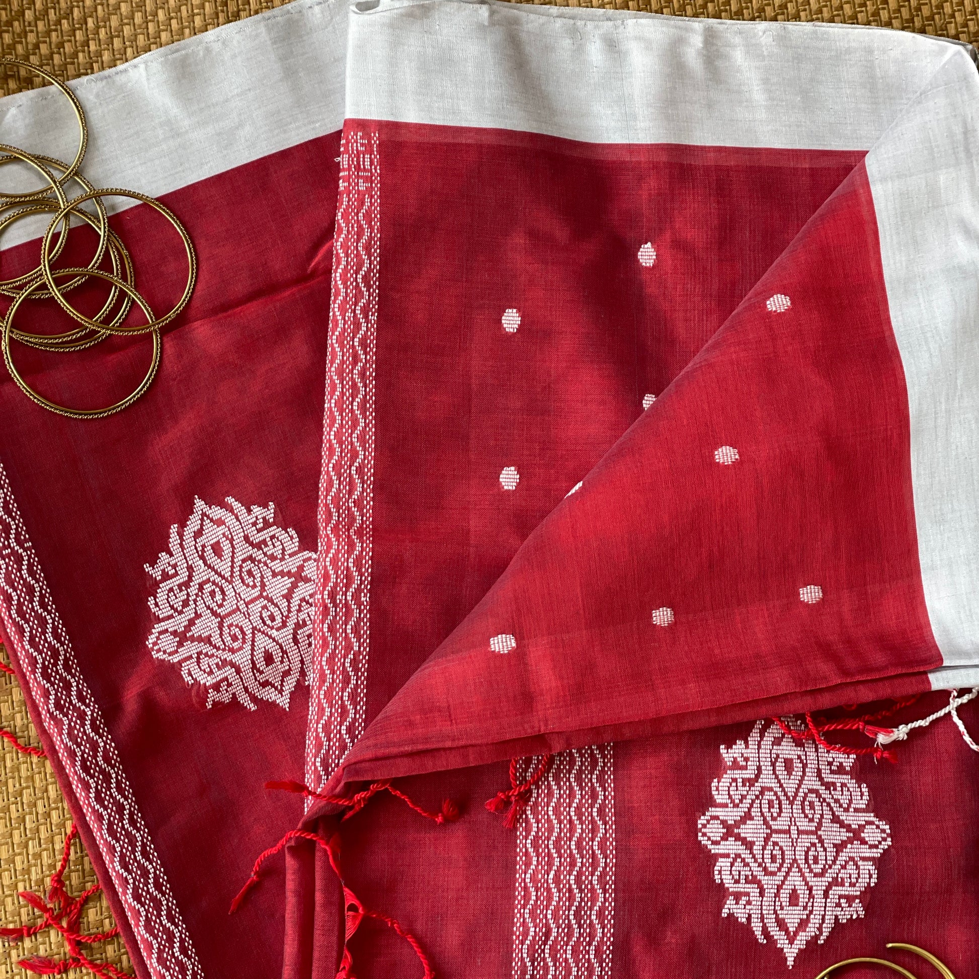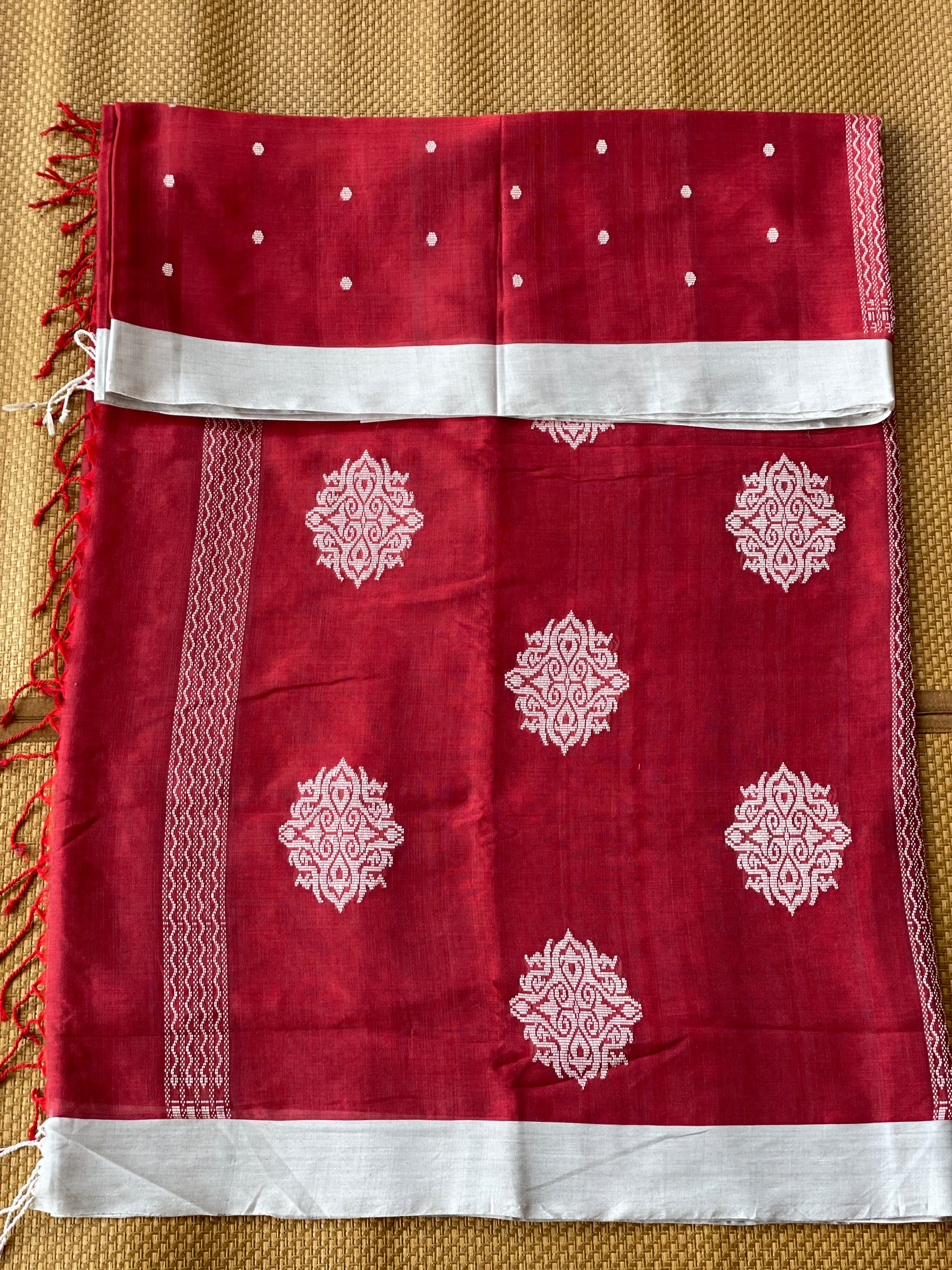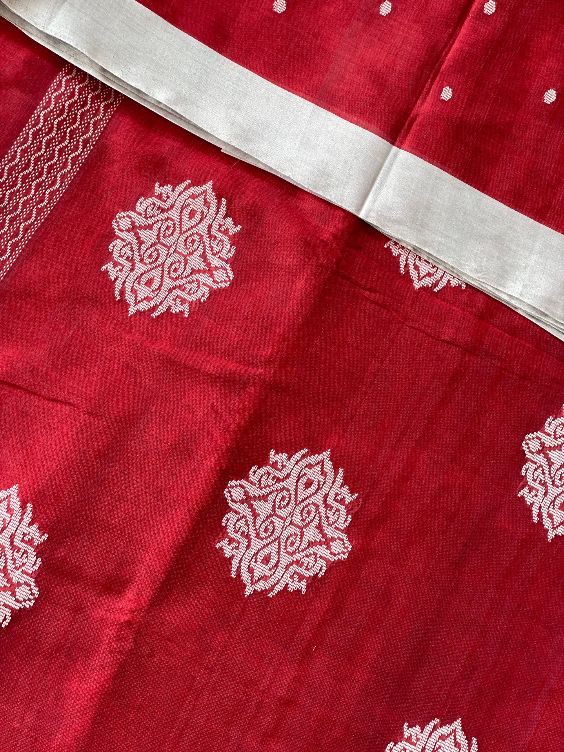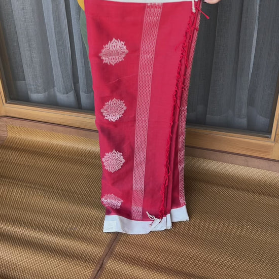 Crimson Red Mercerised Cotton Saree