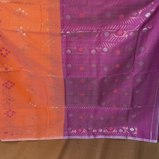 An expression of understated luxury, this handwoven cotton silk saree blends breathable comfort with a soft, elegant sheen. Finely woven zari bootis lend a delicate shimmer, making it a timeless choice for elevated everyday wear and graceful daytime occasions.