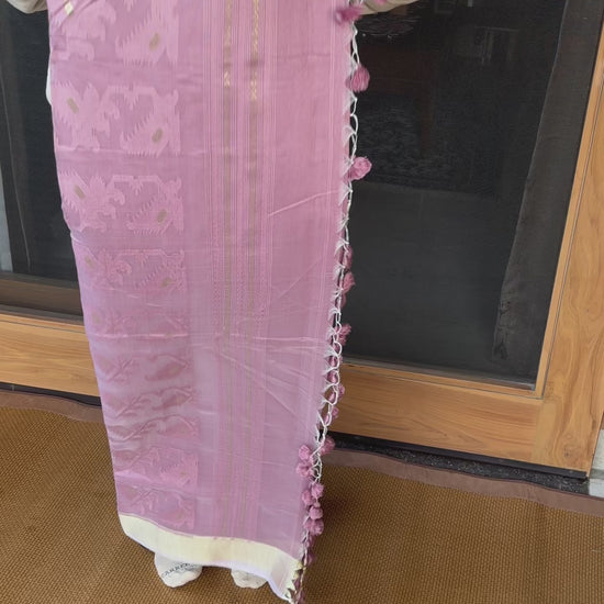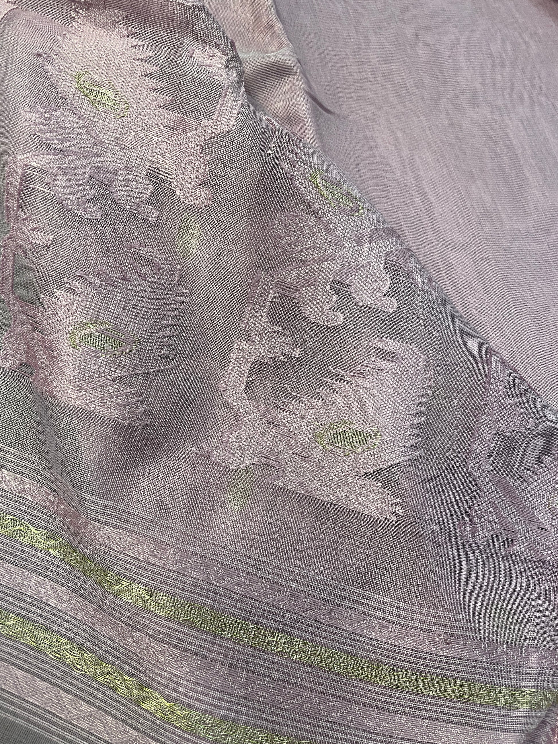 Lilac Jacquard Cotton Silk Saree with Zari border