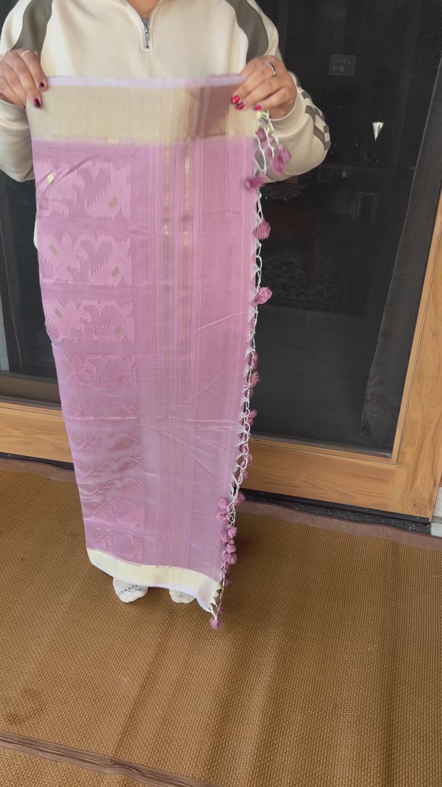 Designed for comfort and grace, this saree features intricate woven motifs and a beautifully finished pallu with tassel accents. Its lightweight feel makes it ideal for long wear at weddings, festivities, or special gatherings while maintaining an elegant, timeless appeal.