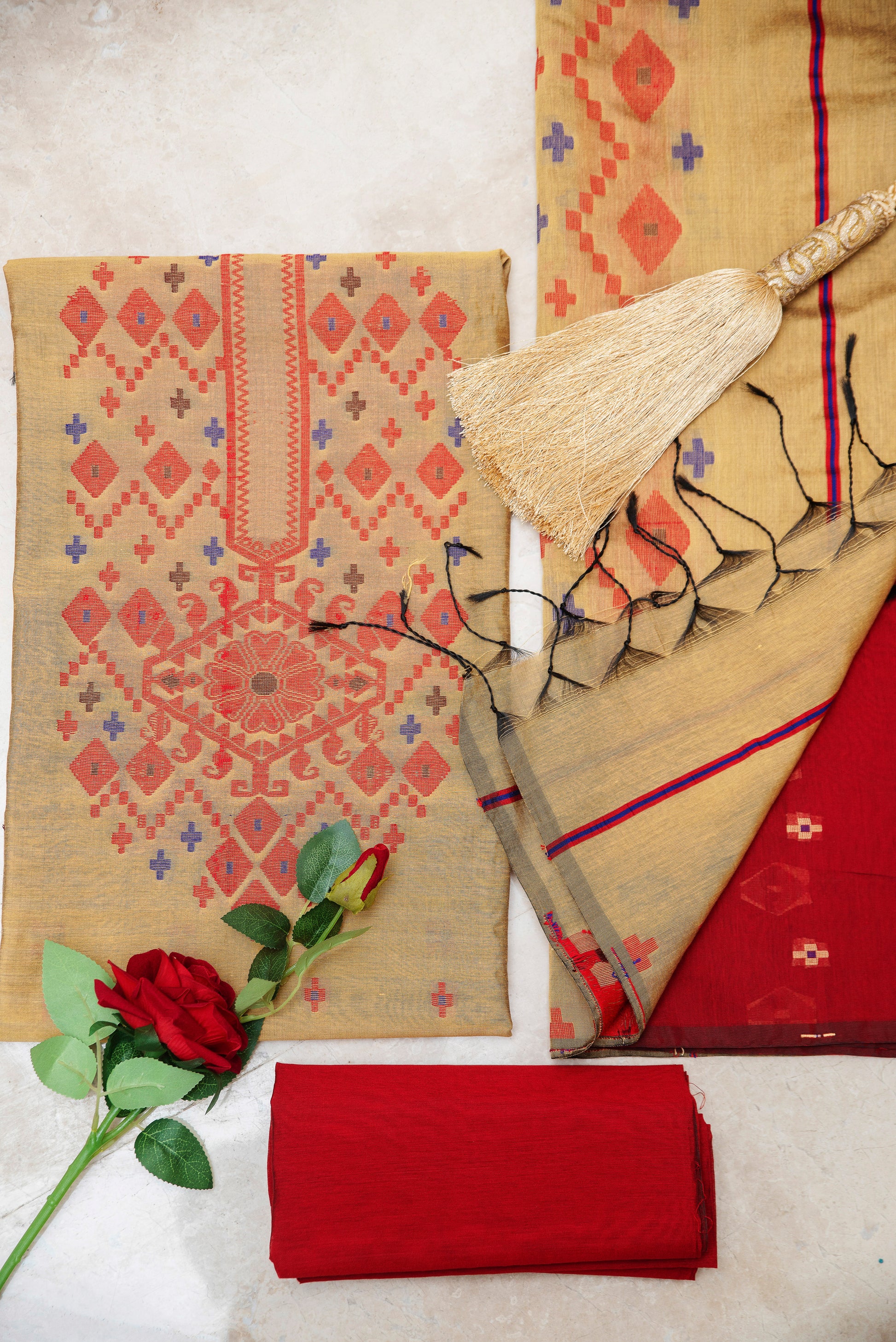 Crafted from the perfect harmony of breathable cotton and lustrous silk, this suit brings together comfort and elegance in one. Lightweight and versatile, they are ideal for festive gatherings, office wear, or casual elegance—making them a timeless choice for every wardrobe.