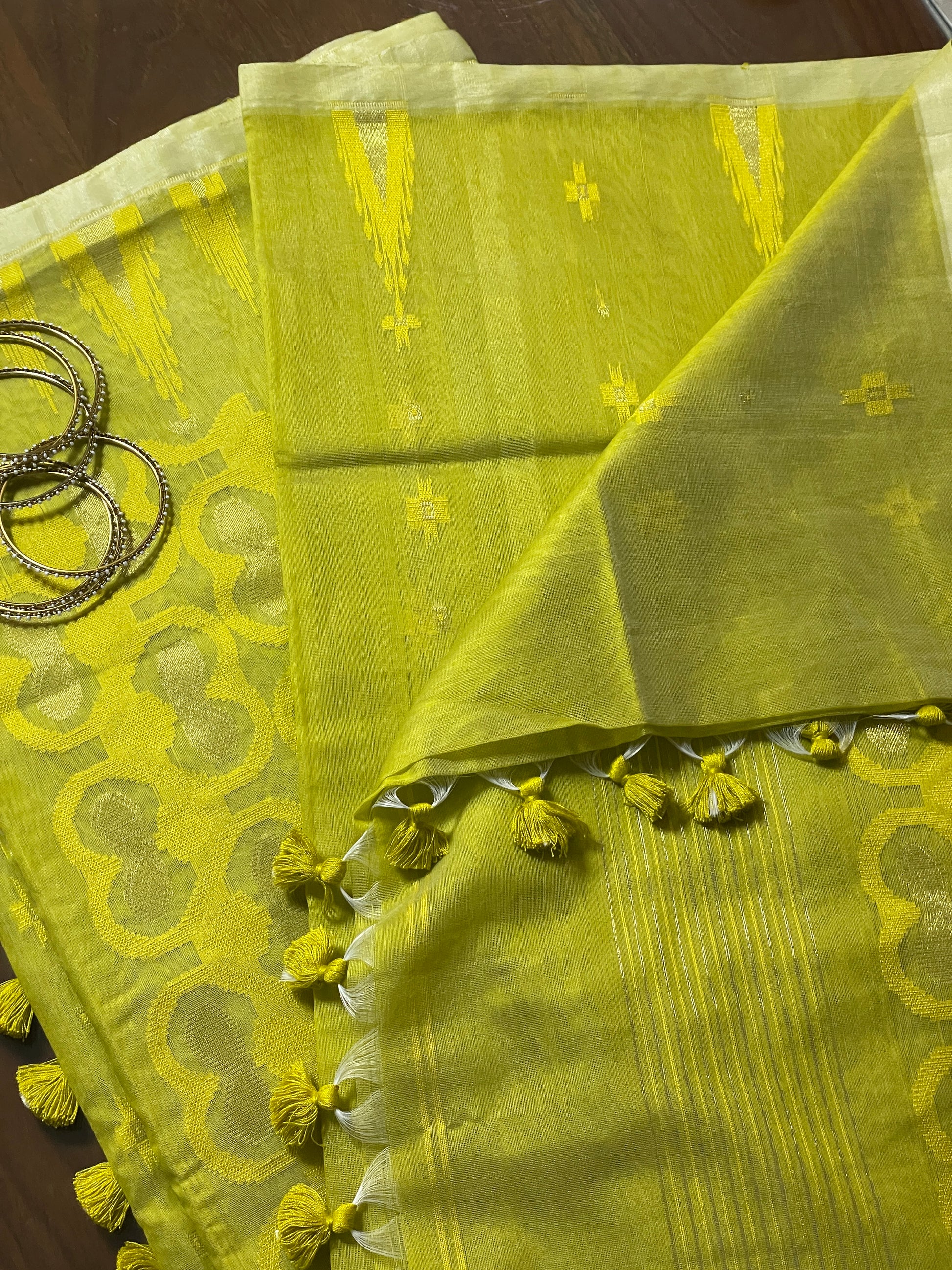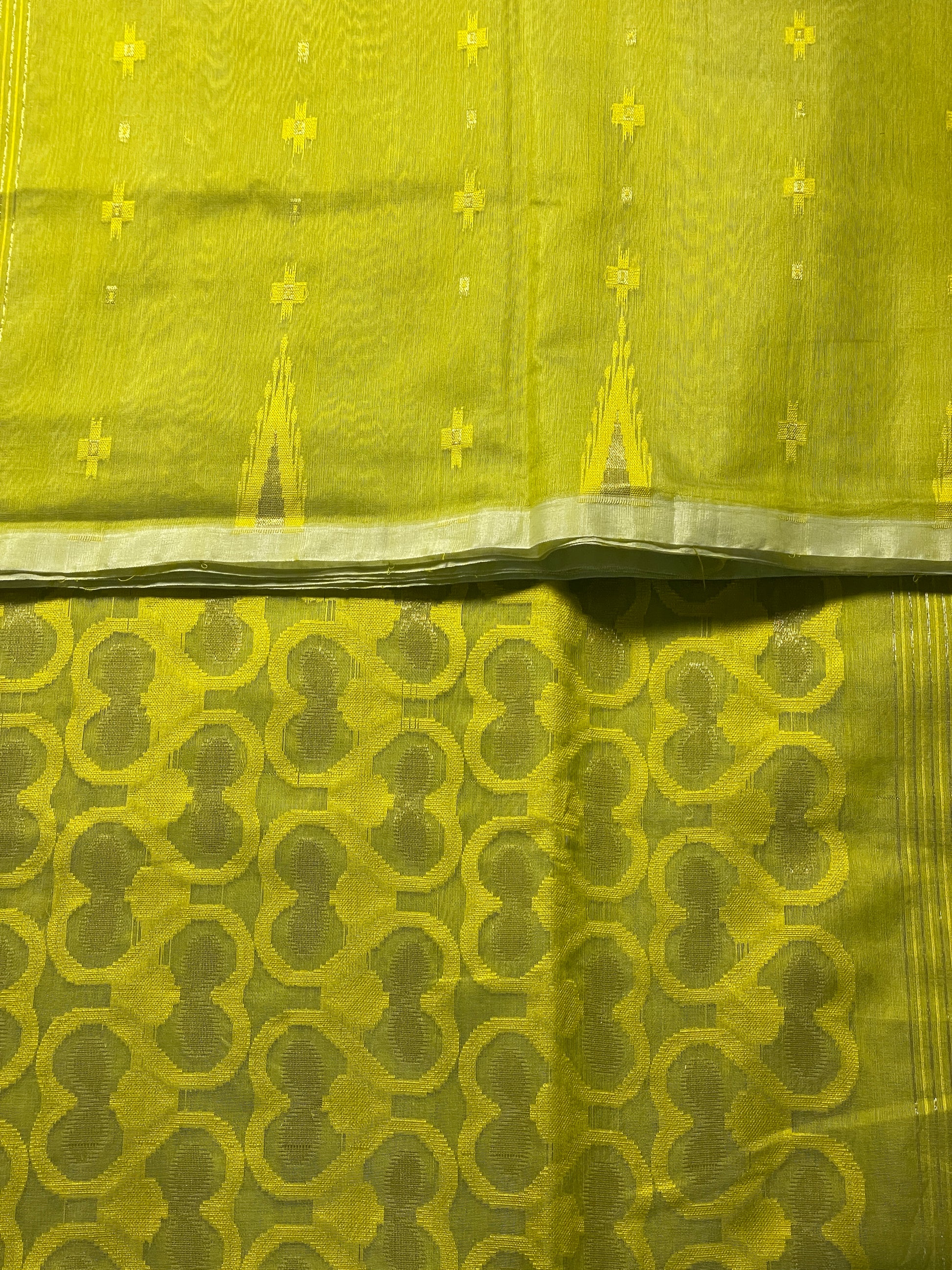 Mustard Lime Cotton Silk Saree